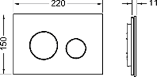 Панель смыва для смывных бачков TECE, фронтальная или верхняя установка. Плоская стеклянная панель смыва с двумя установленными на пружинах клавишами смыва. Подходит для монтажа на уровне стены вместе с монтажной рамкой унитаза (например, арт. 9240649).